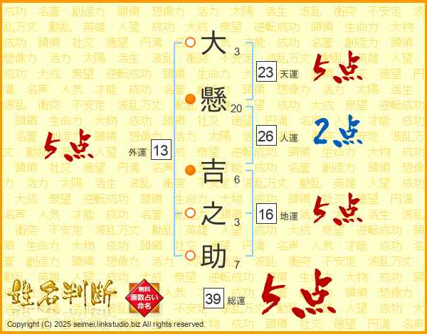 大(3画)懸(20画) 吉(6画)之(3画)助(7画)