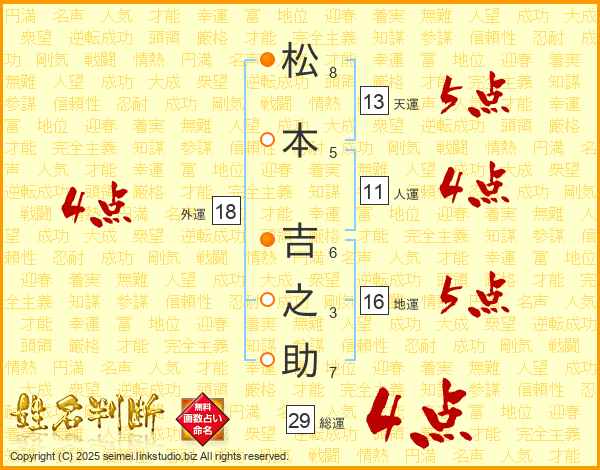 松(8画)本(5画) 吉(6画)之(3画)助(7画)