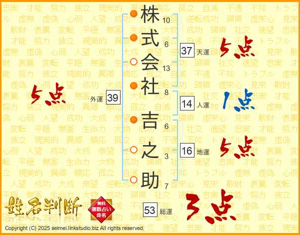 株(10画)式(6画)会(13画)社(8画) 吉(6画)之(3画)助(7画)