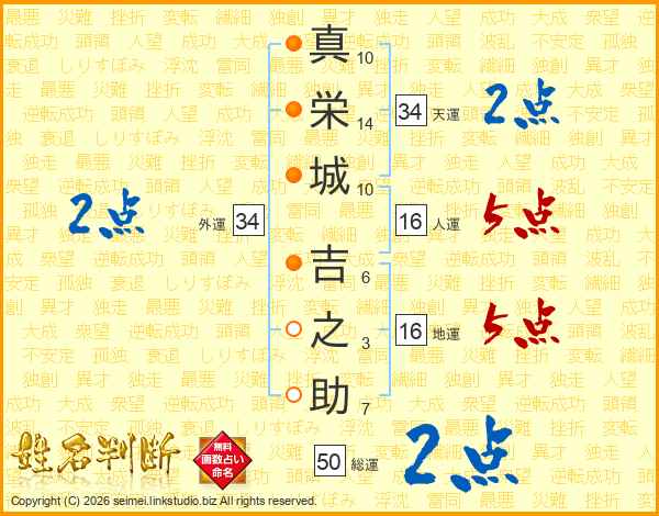 真栄城吉之助さんの総運は50画の2点!