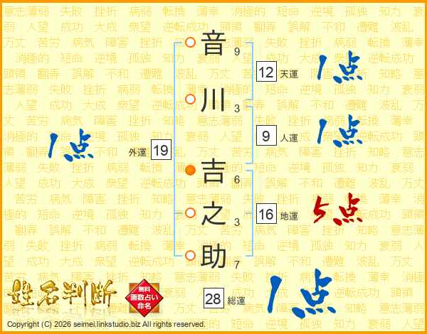 音川吉之助さんの総運は28画の1点!