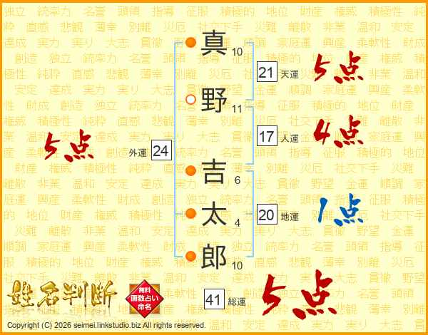 真野吉太郎さんの外運は24画の5点!