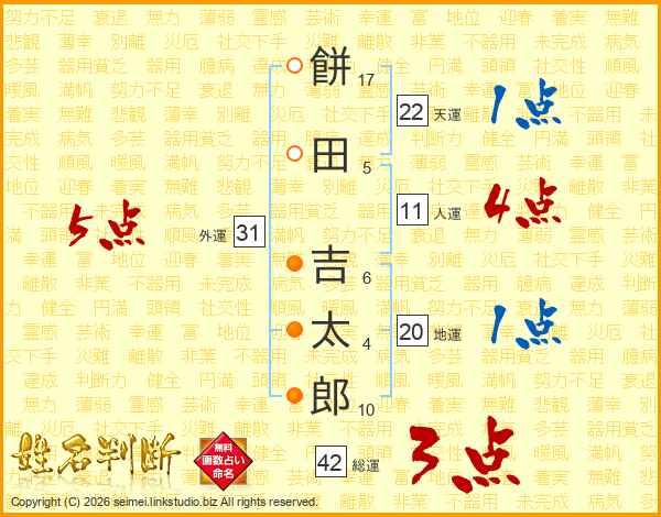 餅田吉太郎さんの総運は42画の3点!
