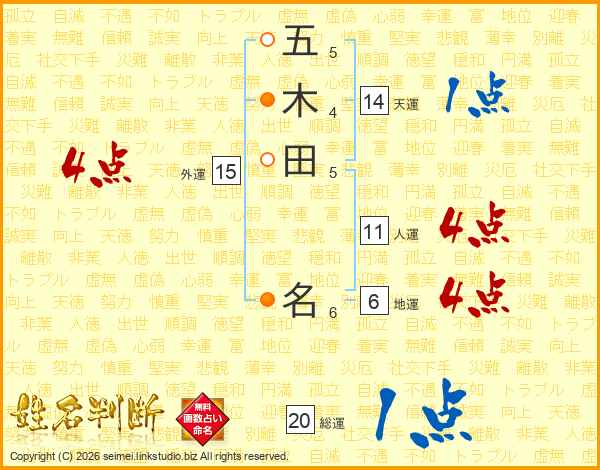 五木田名さんの人運は11画の4点!