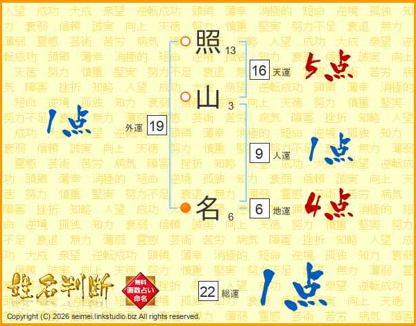 照山名さんの総運は22画の1点!