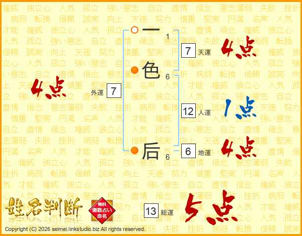一色后さんの天運は7画の4点!