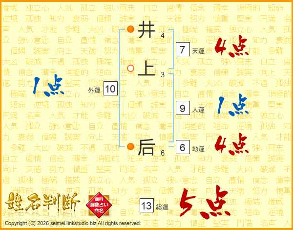 井上后さんの天運は7画の4点!