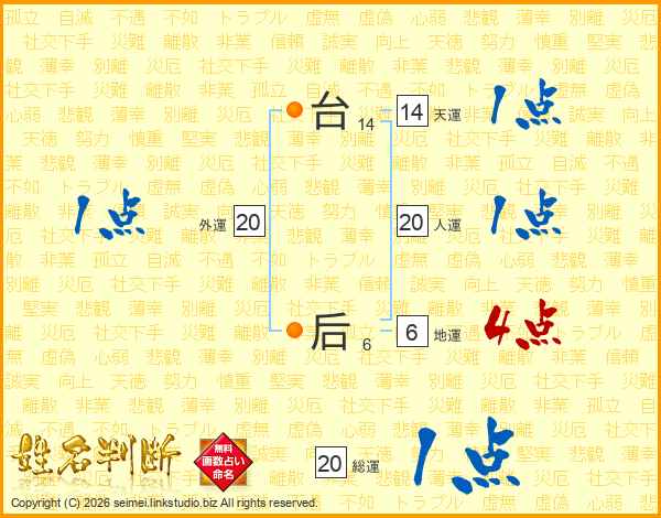台后さんの人運は20画の1点!