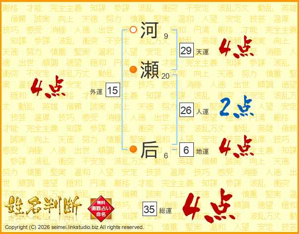 河瀬后さんの総運は35画の4点!