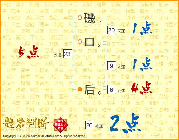 磯口后さんの総運は26画の2点!