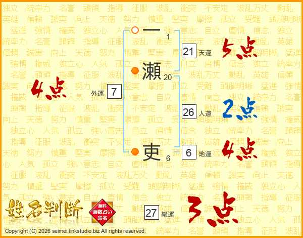 一瀬吏さんの外運は7画の4点!