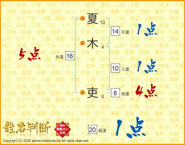 夏木吏さんの天運は14画の1点!