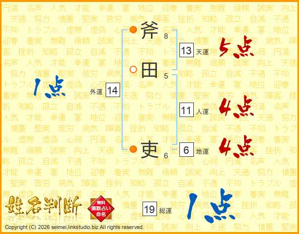 斧田吏さんの天運は13画の5点!