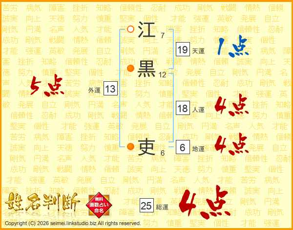 江黒吏さんの総運は25画の4点!