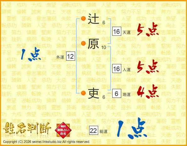 辻原吏さんの総運は22画の1点!