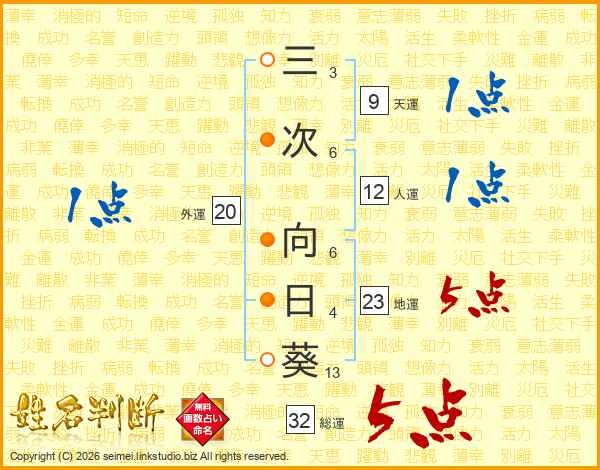 三次向日葵さんの総運は32画の5点!