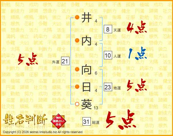 井内向日葵さんの総運は31画の5点!