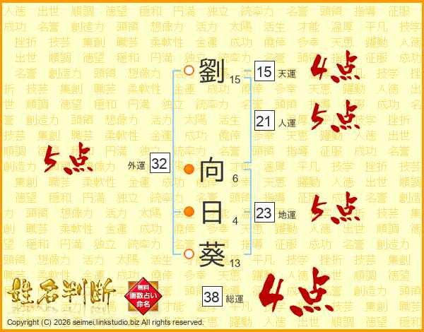 劉向日葵さんの総運は38画の4点!