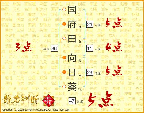 国(11画)府(8画)田(5画) 向(6画)日(4画)葵(13画)
