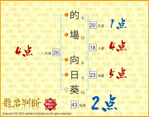 的(8画)場(12画) 向(6画)日(4画)葵(13画)