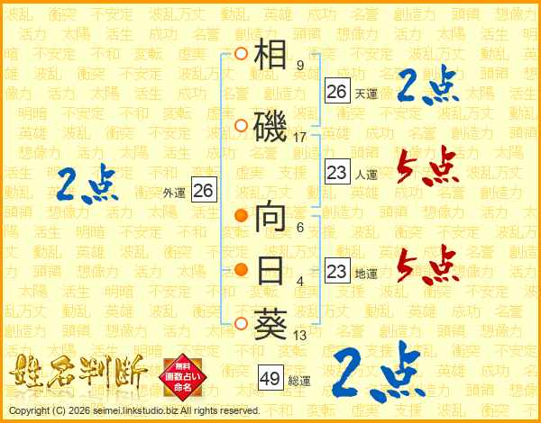 相磯向日葵さんの天運は26画の2点!