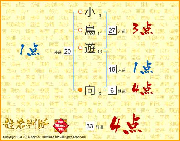小鳥遊向さんの総運は33画の4点!
