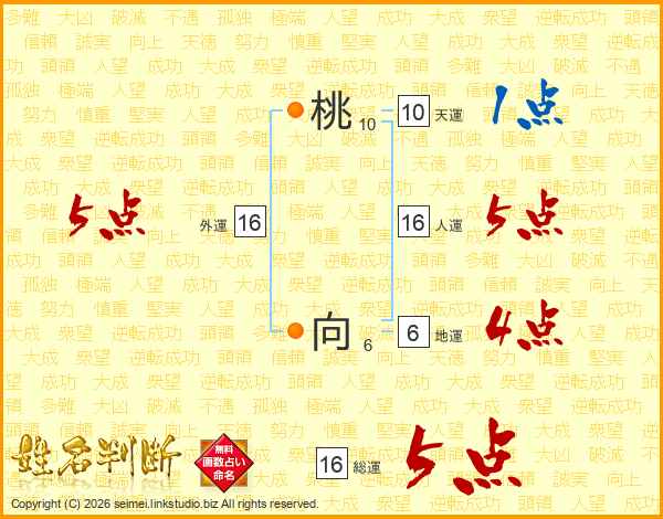 桃向さんの総運は16画の5点!