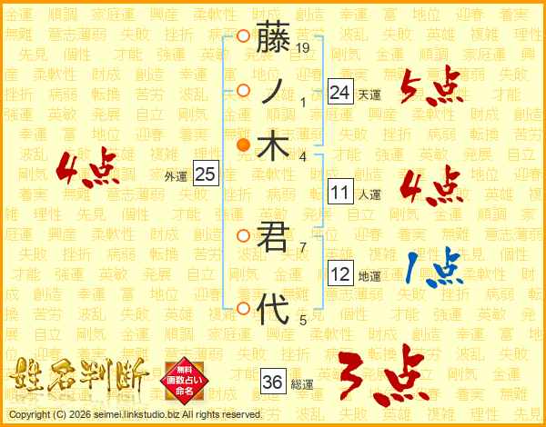 藤(19画)ノ(1画)木(4画) 君(7画)代(5画)
