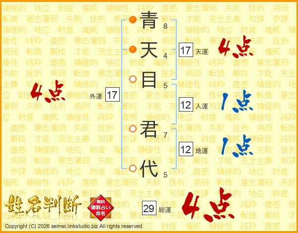 青天目君代さんの天運は17画の4点!