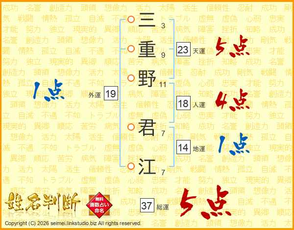 三重野君江さんの総運は37画の5点!