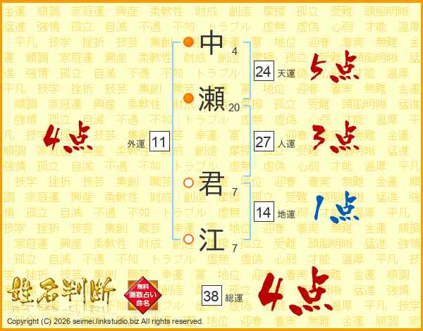 中瀬君江さんの総運は38画の4点!