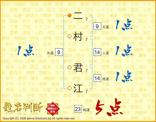 二村君江さんの総運は23画の5点!