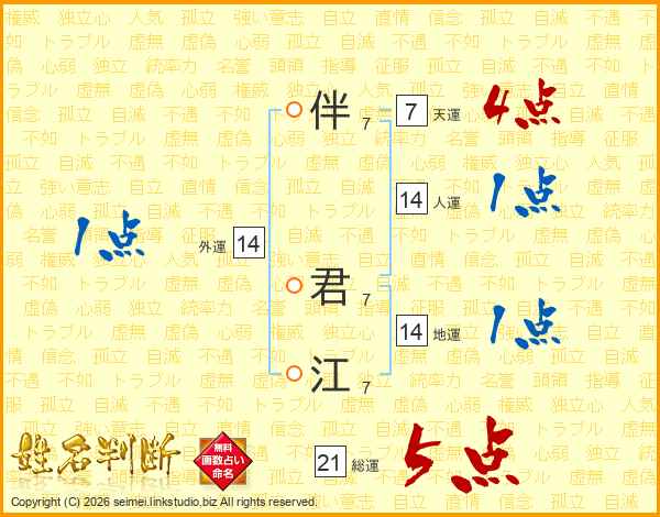 伴君江さんの総運は21画の5点!