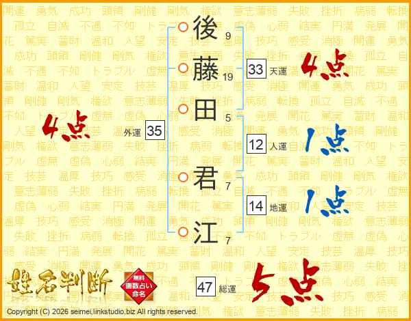 後藤田君江さんの総運は47画の5点!