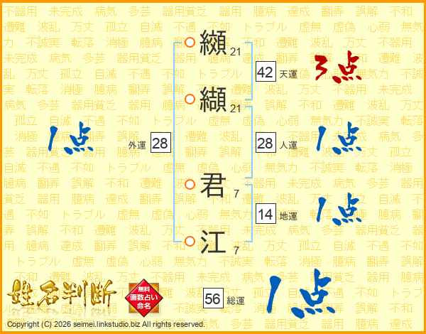纐纈君江さんの総運は56画の1点!