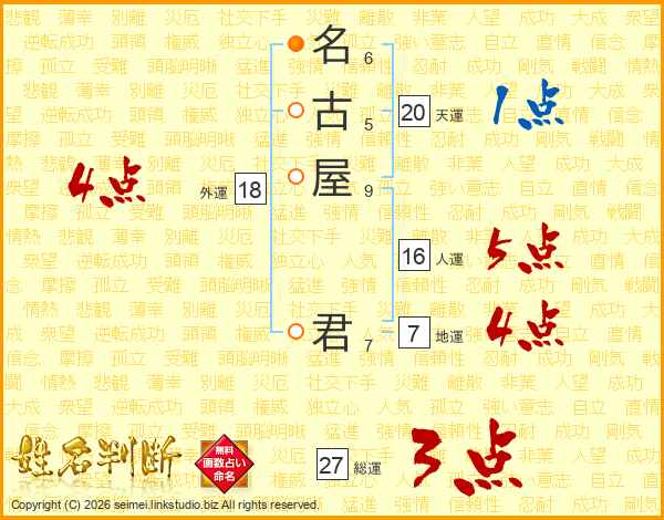 名(6画)古(5画)屋(9画) 君(7画)