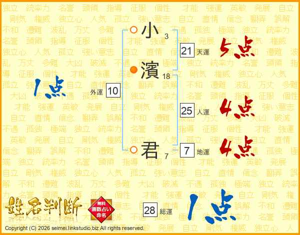 小(3画)濱(18画) 君(7画)