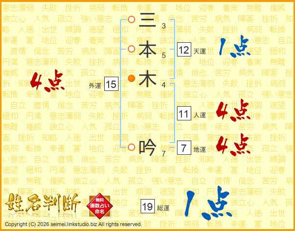 三本木吟さんの人運は11画の4点!