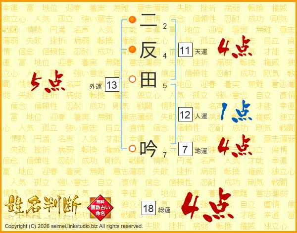 二反田吟さんの総運は18画の4点!