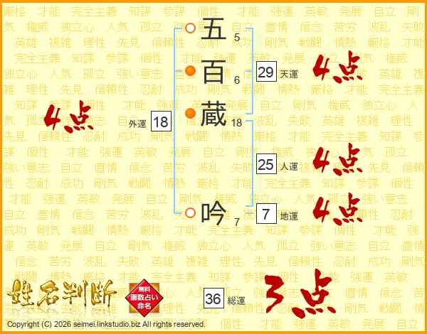 五百蔵吟さんの総運は36画の3点!