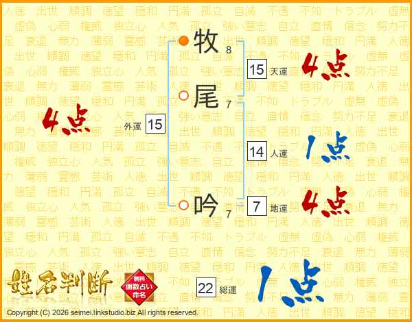 牧尾吟さんの総運は22画の1点!