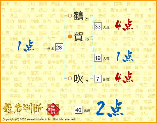 鶴(21画)賀(12画) 吹(7画)