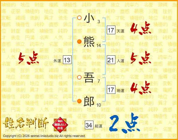 小(3画)熊(14画) 吾(7画)郎(10画)