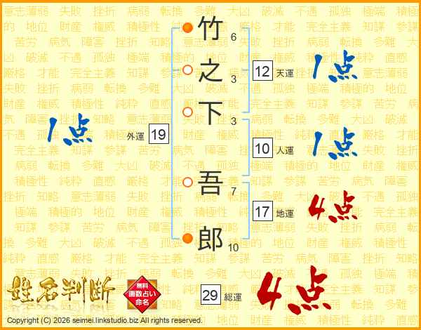竹之下吾郎さんの総運は29画の4点!