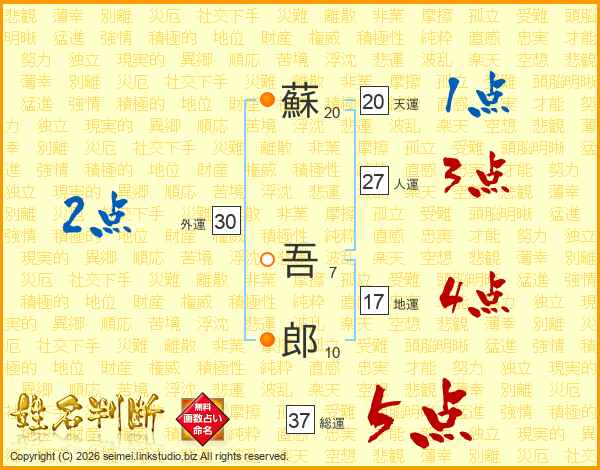 蘇吾郎さんの総運は37画の5点!