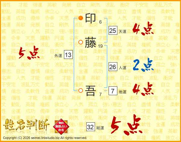 印藤吾さんの総運は32画の5点!
