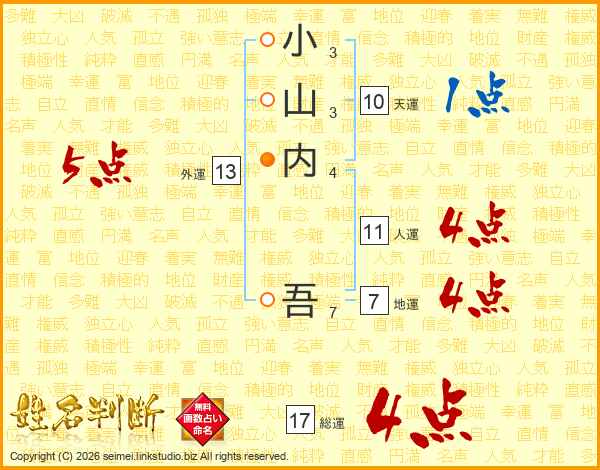 小山内吾さんの総運は17画の4点!