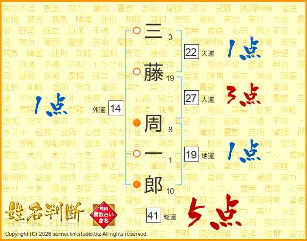 三(3画)藤(19画) 周(8画)一(1画)郎(10画)