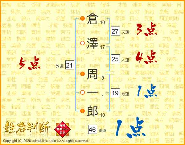 倉澤周一郎さんの総運は46画の1点!
