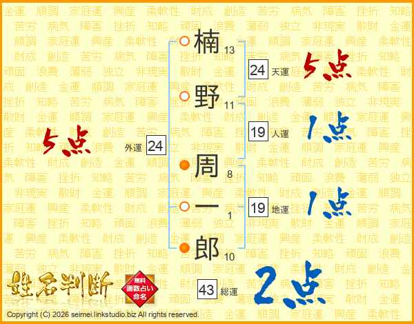 楠野周一郎さんの総運は43画の2点!